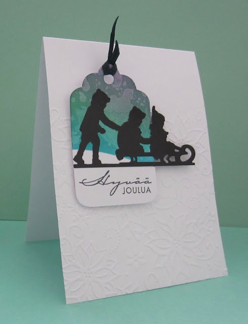 The beautiful mirror in the left corner of the photo caught my eye and somehow it reminded me of a die I have. The pattern is not really similar but that's how this card started! I then decided to just follow the color palette of the photo and see what else I could find in my stash to go with the feel of the photo... And a feather die seemed really appropriate due to the giant wings over the sofa. :) This card has no stamping (well, the heat embossed sentiment of course, by STAMPlorations!) and it was quite fun to make a card just out of dies. I wanted my sentiment to be sparkly so I heat embossed it with glittery WOW embossing powder and added shiny sequins too. This color palette sure is wonderful!
