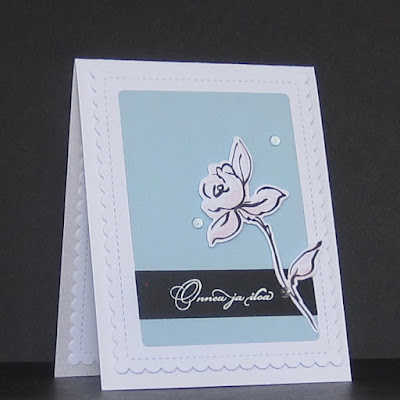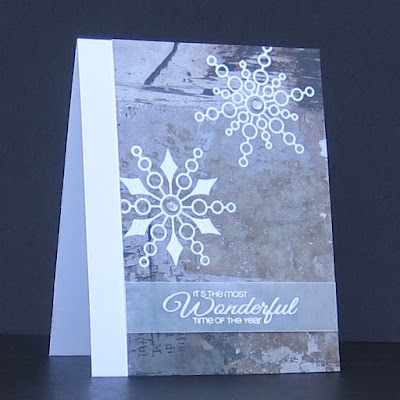 My card is made with patterned paper, vellum and CAS-ual Fridays snowflake stamps and sentiment stamp heat embossed with white powder. I love how this turned out but the photo gives it no justice -I photographed this outside one morning when the sun was not really up yet (not that it shines too much in November anyway...) and the white in the photo looks very blue. It's that time of year again when taking photos of your cards is super annoying!