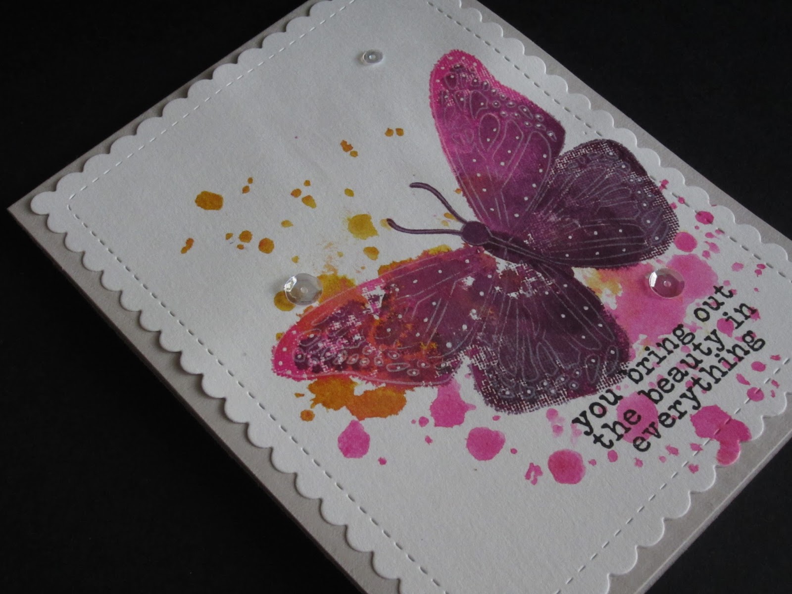 My good friend Marina is being CASEd at City Crafter Challenge and of course I did not want to miss the opportunity to CASE her myself. Her card gave me so many ideas, I absolutely loved the layout. Here it is: